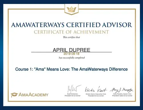 “April is the best! She has helped us with our Carnival Cruise Lines vacations from getting the best deals, extra on board credits, and complimentary upgrades. She keeps in touch from beginning to end including pre and post vacation phone calls.”